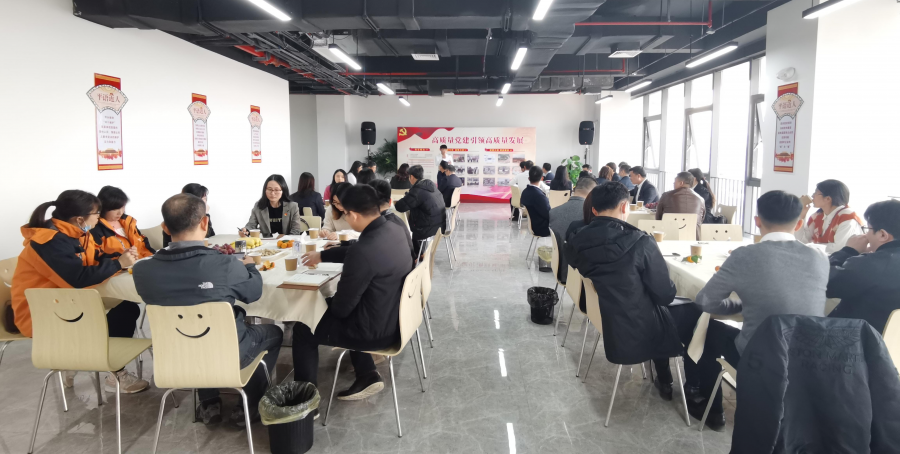 在分享交流环节,夏竟宾和戴明智同志分享了科信公司党支部和中建三局纳米智能科技园项目党支部党建联建对于纳米智能科技园、滤波器等项目建设的促进作用,通过联合党建纽带作用,充分发挥党建引领作用和党员先锋模范作用,项目参与建设各方相互融合,相互学习,攻克一个又一个难关,创造了“黄埔速度”。